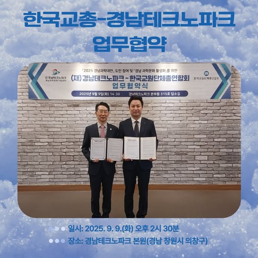 한국교총은 경남테크노파크와 함께 미래 세대 인재 양성을 위해 힘쓰겠습니다.