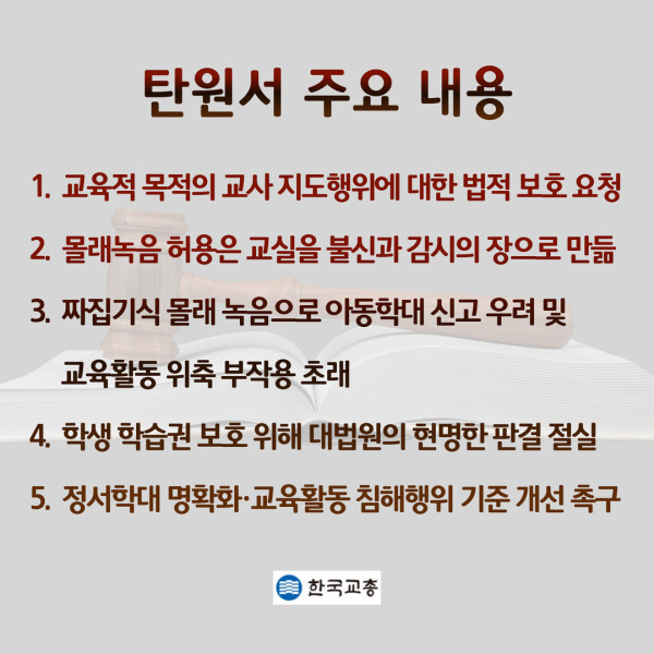 교육적 목적의 교사 지도행위 법적 보호 요청