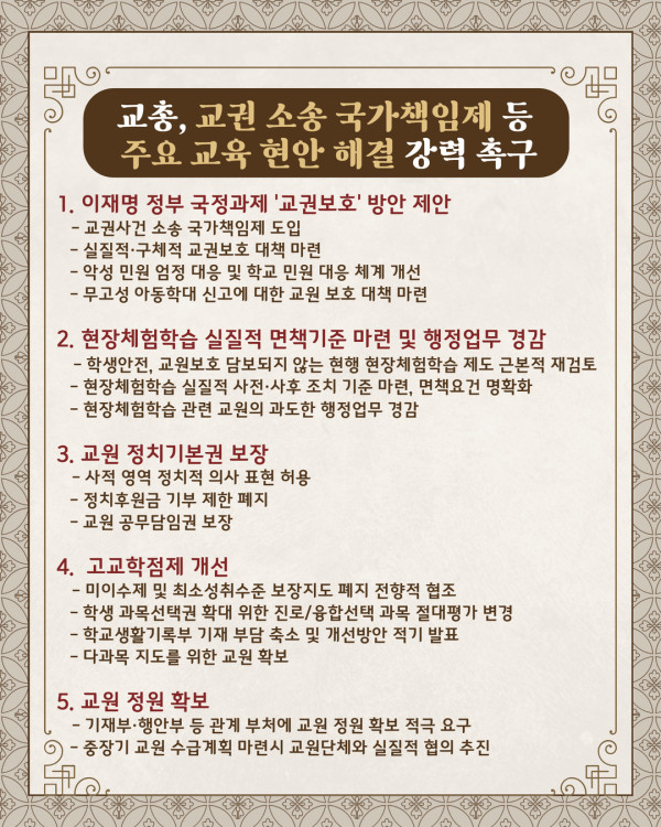 -교권 소송 국가책임제 도입 등 구체적 교권보호 대책 주문