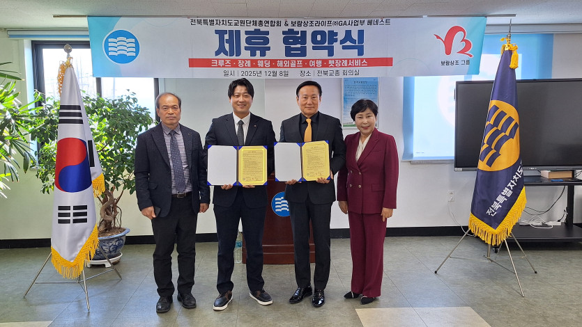 전북교총-보람상조 업무협약 체결 페이지 정보 작성자 전북교총 댓글 0건 조회 97회 작성일 25-12-09 09:27 본문 ■ 일 시: 2025. 12. 8.(월) ■ 장 소: 전북교총 회관 3층 회의실 목록 이전글전북교총 제169회 이사회 개최 25.12.15 다음글2025년도 제5차 전국시·도교총회장협의회 회의개최 25.12.01 댓글목록 댓글목록 등록된 댓글이 없습니다.