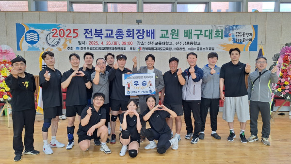전북교총(회장 오준영)은 제72회 교육주간 및 제44회 스승의 날을 기념해 26일 전주교대 체육관과 전주남초에서 ‘2025 전북교총회장배 교원 배구대회 및 교육공로자 표창식’을 개최했다.
