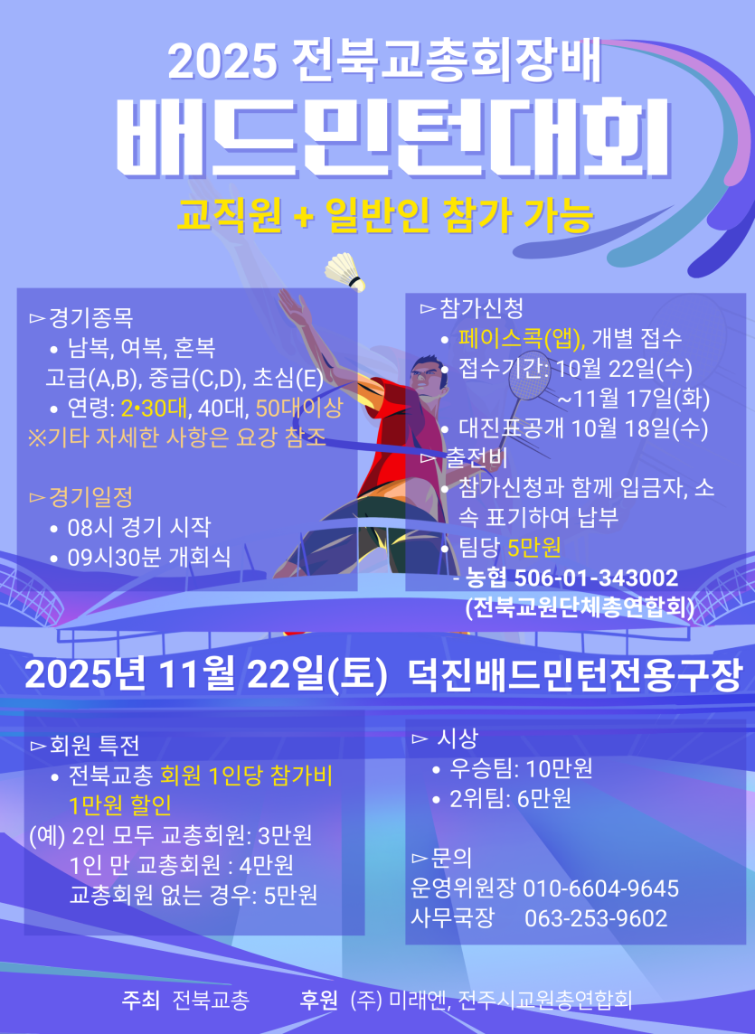 ※ 첨부파일 : 2025 전북교총회장배 배드민턴 대회요강