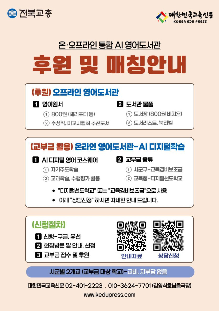 - 전북교총 공문 온오프라인 통합 AI 영어도서관 조성사업 후원신청 안내최종.pdf (205.1K) 47회 다운로드 | DATE : 2025-12-04 15:00:46