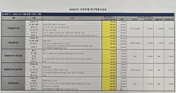 ■ 할인혜택: 연별 '라한호텔 전주' 연간제휴요금표 참고